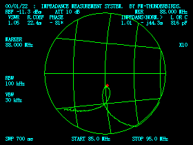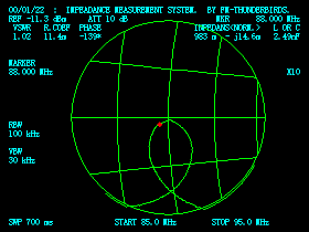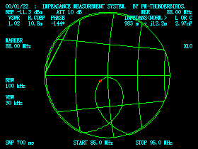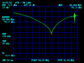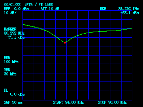 未調整で測定してみると、同調周波数が86MHz付近にブットンでます。