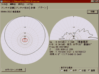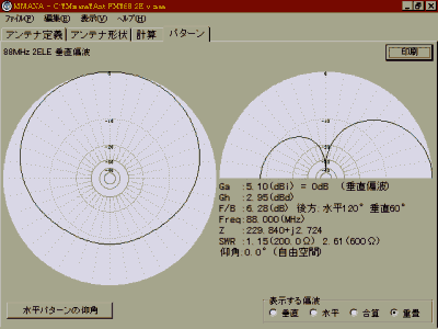 2素子構成なので、わずかな指向性があります。 後にMMANAを使ってアンテナのシュミレーションをしてみました。